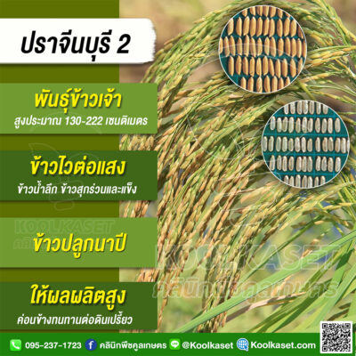เมล็ดพันธุ์ข้าว ข้าวเจ้า ปราจีนบุรี 2 ไวแสง นาปี ยืดตามน้ำ พื้นที่น้ำลึก เมล็ดแข็ง 25 กก. คลินิกพืชคูลเกษตร