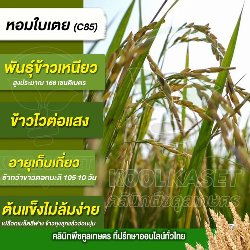 สวัสดีค่ะพี่น้องเกษตรกรทุกท่าน วันนี้ เจ๊หมู คูลเกษตร มีของดีมาบอกต่อ! ใครที่ชอบทานข้าวสวยสีขาวนวล เนื้อสัมผัสนุ่ม เหนียว และที่สำคัญคือต้องมีกลิ่นหอมฟุ้งเหมือนใบเตยเตะจมูก เจ๊หมูบอกเลยว่าต้องยกให้พันธุ์นี้เท่านั้นค่ะ “นาปี ข้าวเจ้า หอมใบเตย 62” หรือที่หลายคนคุ้นหูกันในชื่อ C85 นั่นเอง