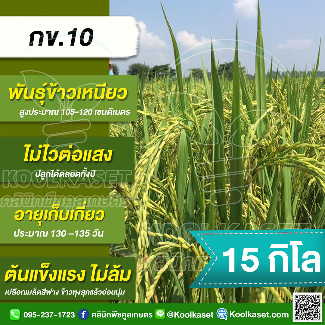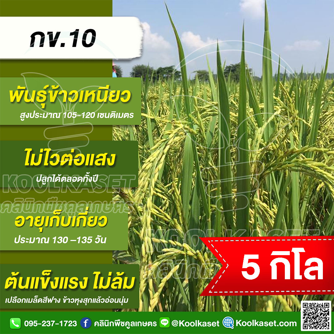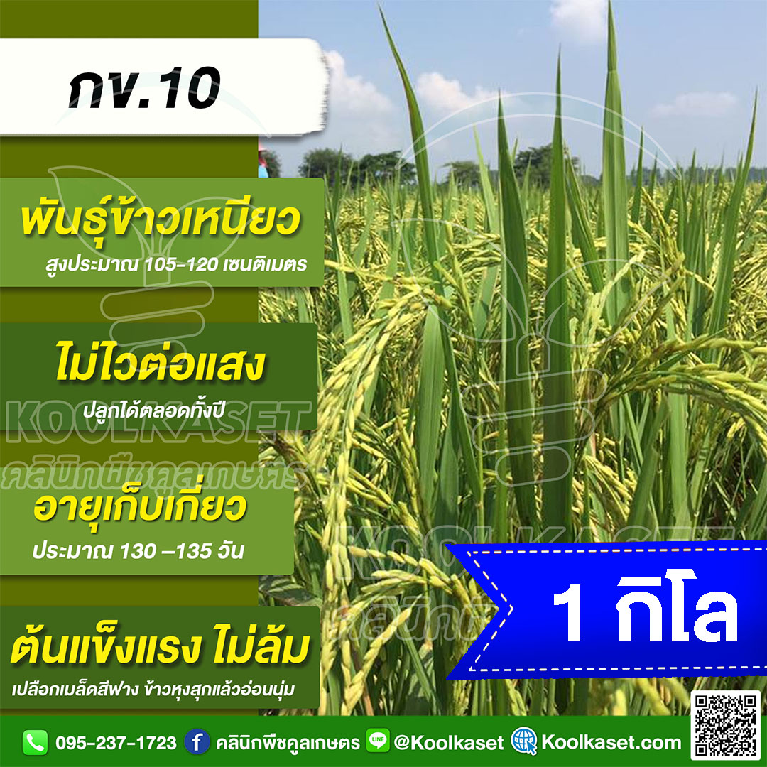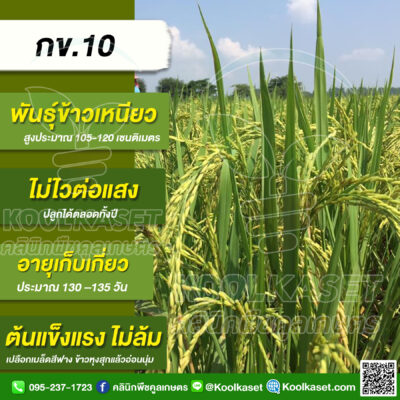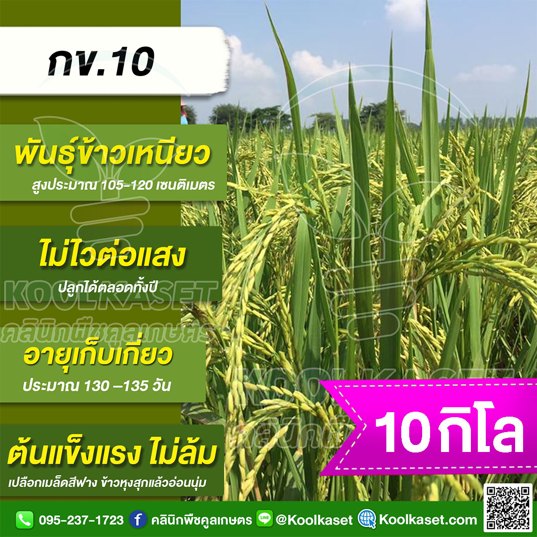 เมล็ดพันธุ์ข้าว ข้าวเหนียว กข.10 RD.10 นาปี นาปรัง ไม่ไวแสง ต้นเตี้ย 25 กก. คลินิกพืชคูลเกษตร KR48