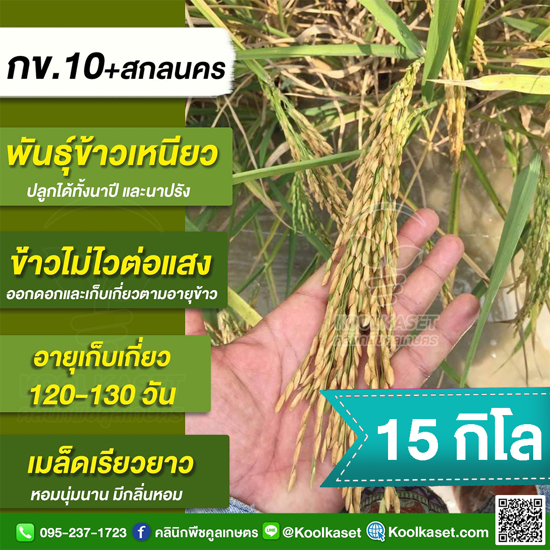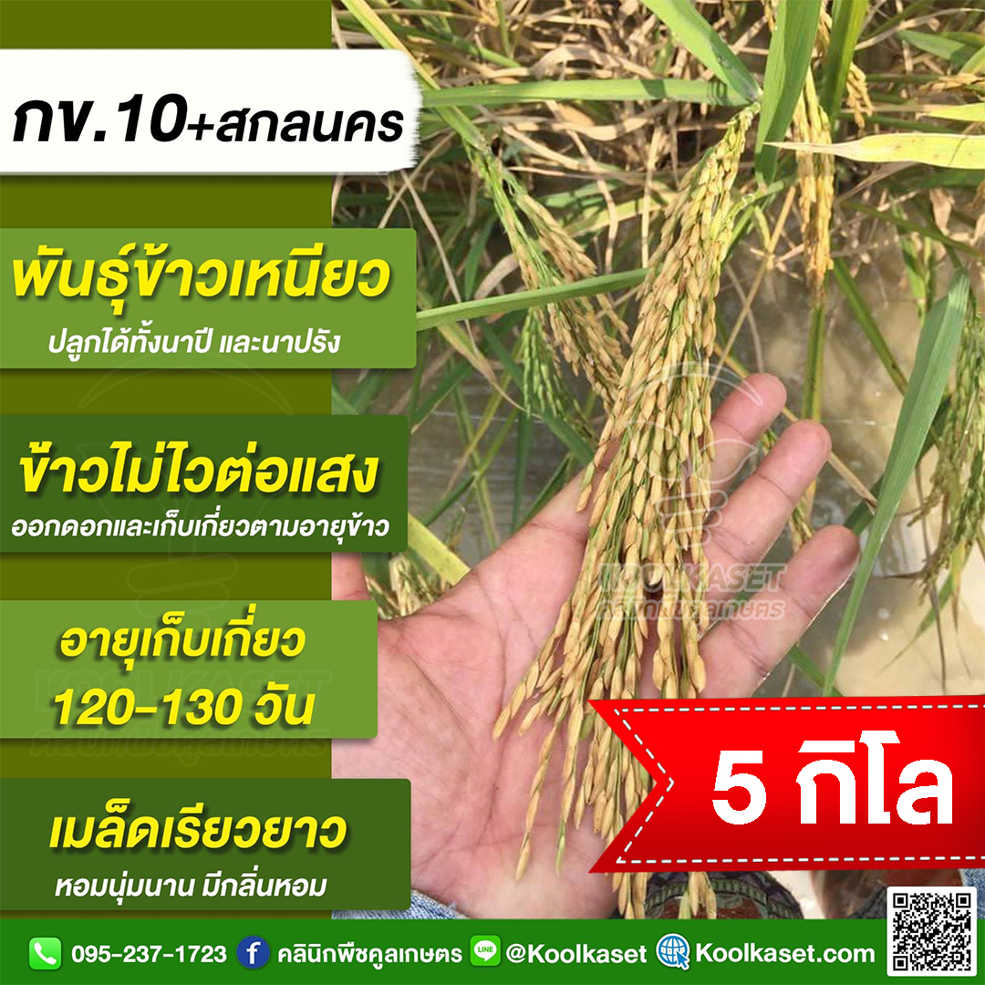 เมล็ดพันธุ์ข้าว ข้าวเหนียว กข.10+สกลนคร นาปี นาปรัง ไม่ไวแสง นุ่ม ผลผลิตสูง คลินิกพืชคูลเกษตร KR19