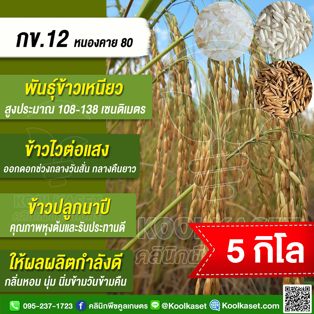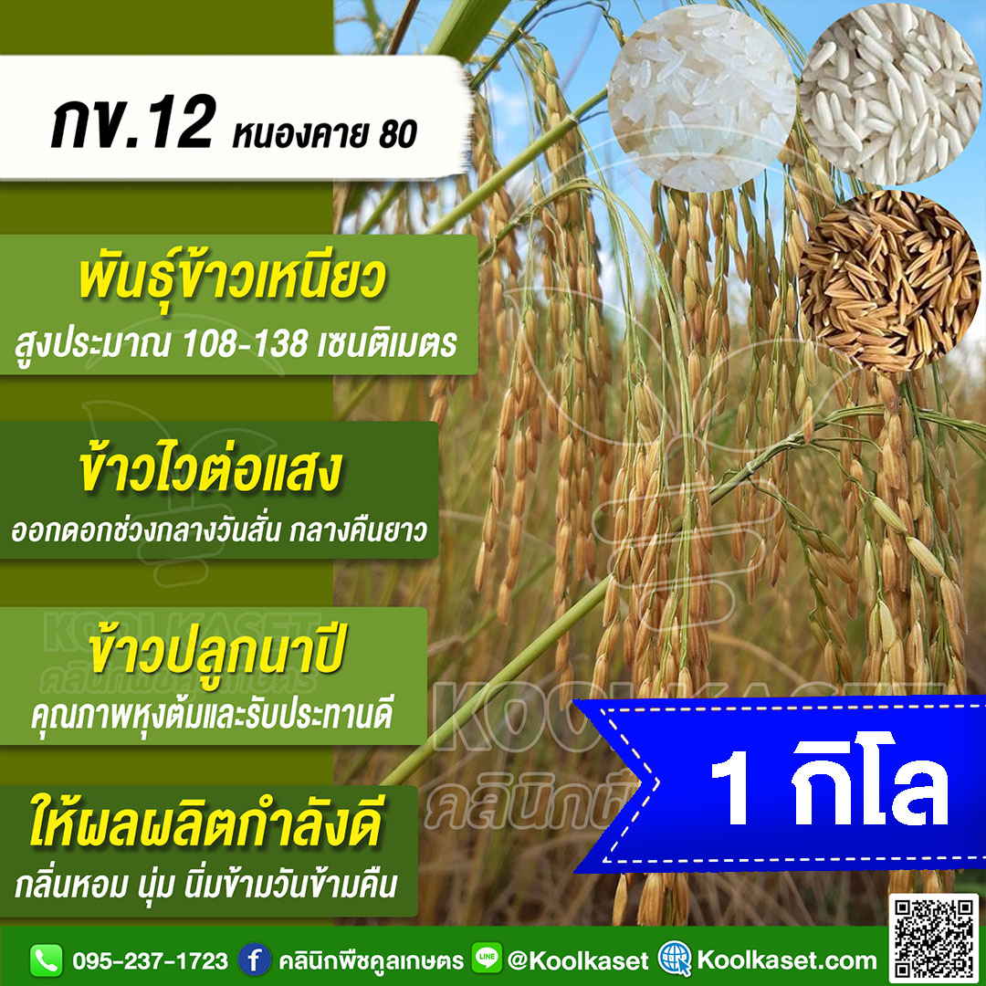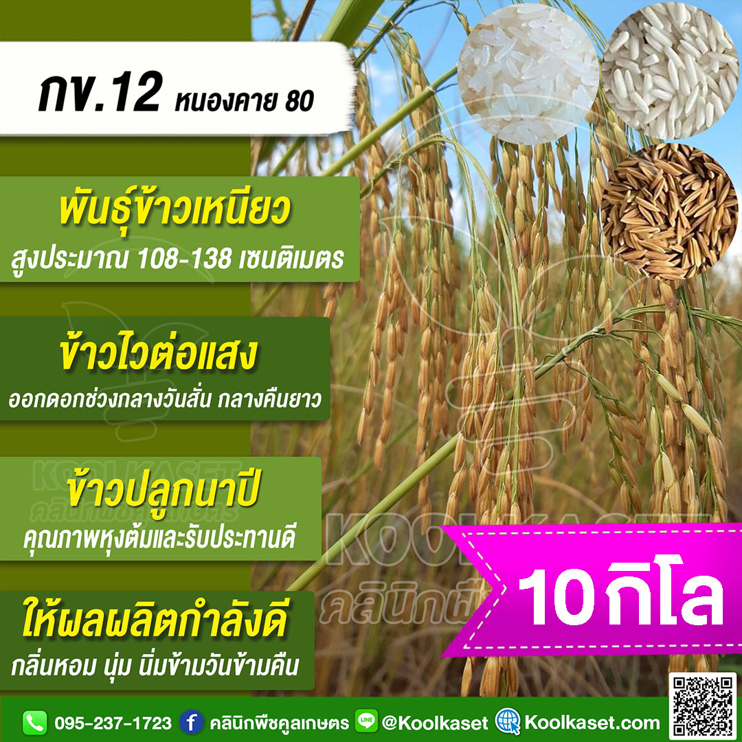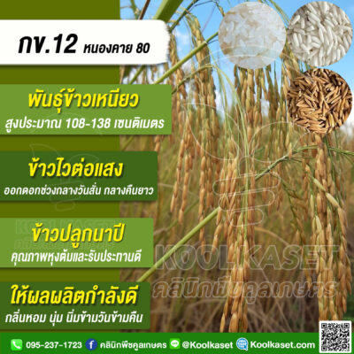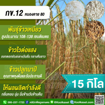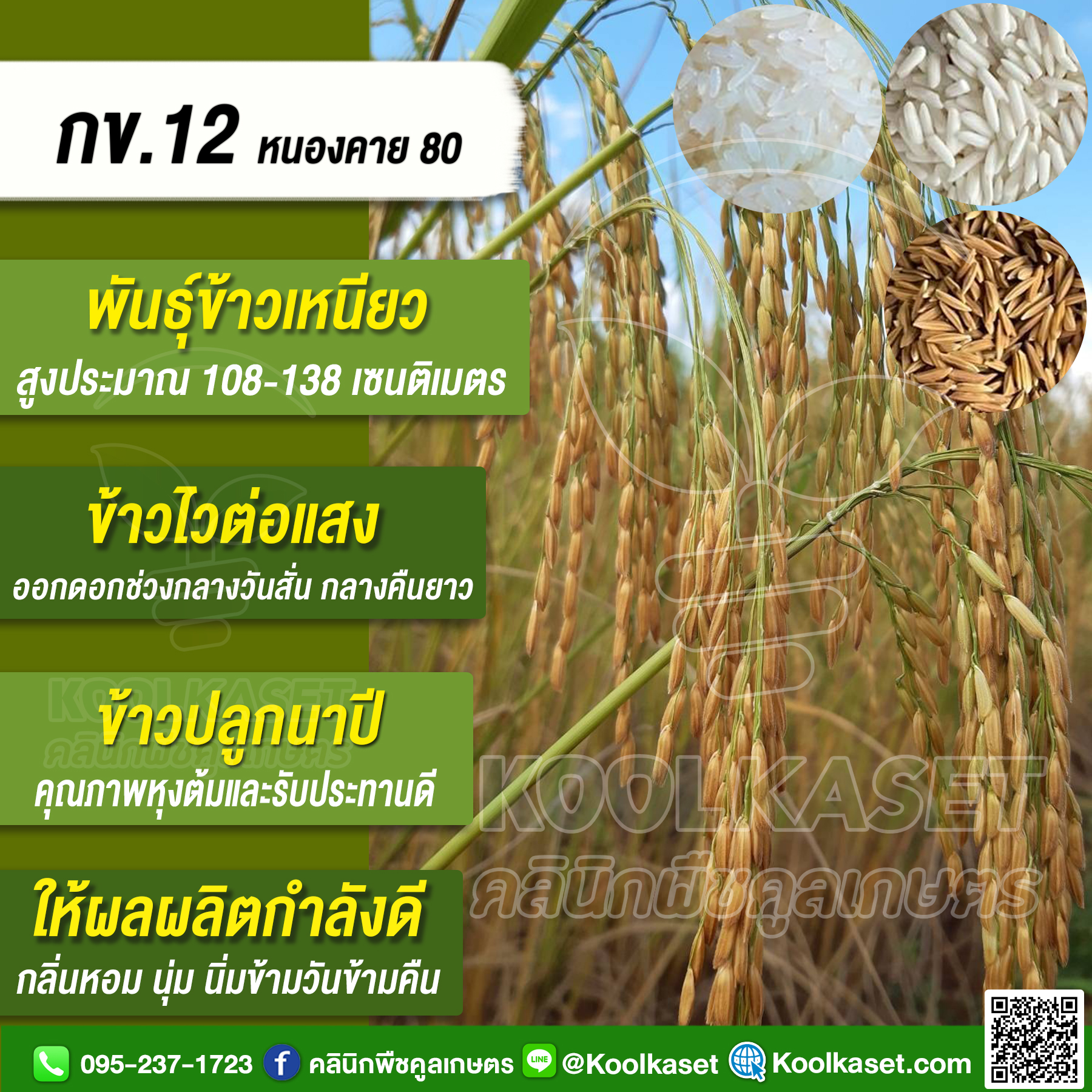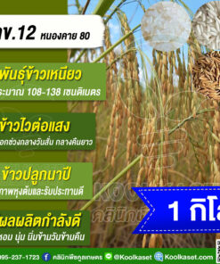 เมล็ดพันธุ์ข้าว ข้าวเหนียว กข.12 RD.12 หนองคาย 80 นาปี ไวแสง ต้นแข็ง นุ่ม พื้นที่นาดอน 25 กก. คลินิกพืชคูลเกษตร KR47