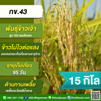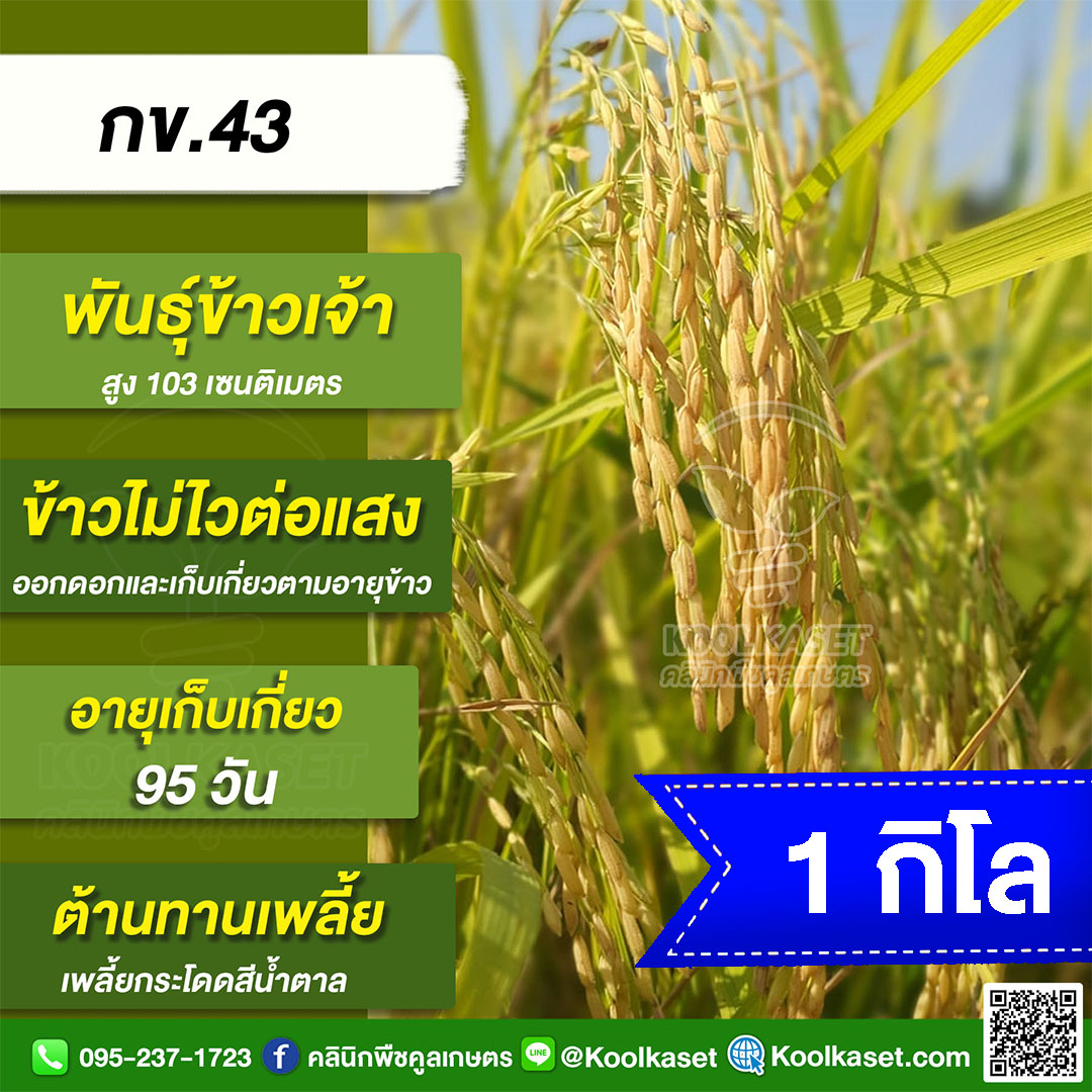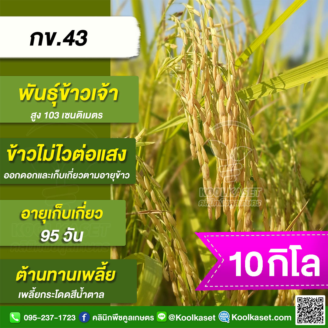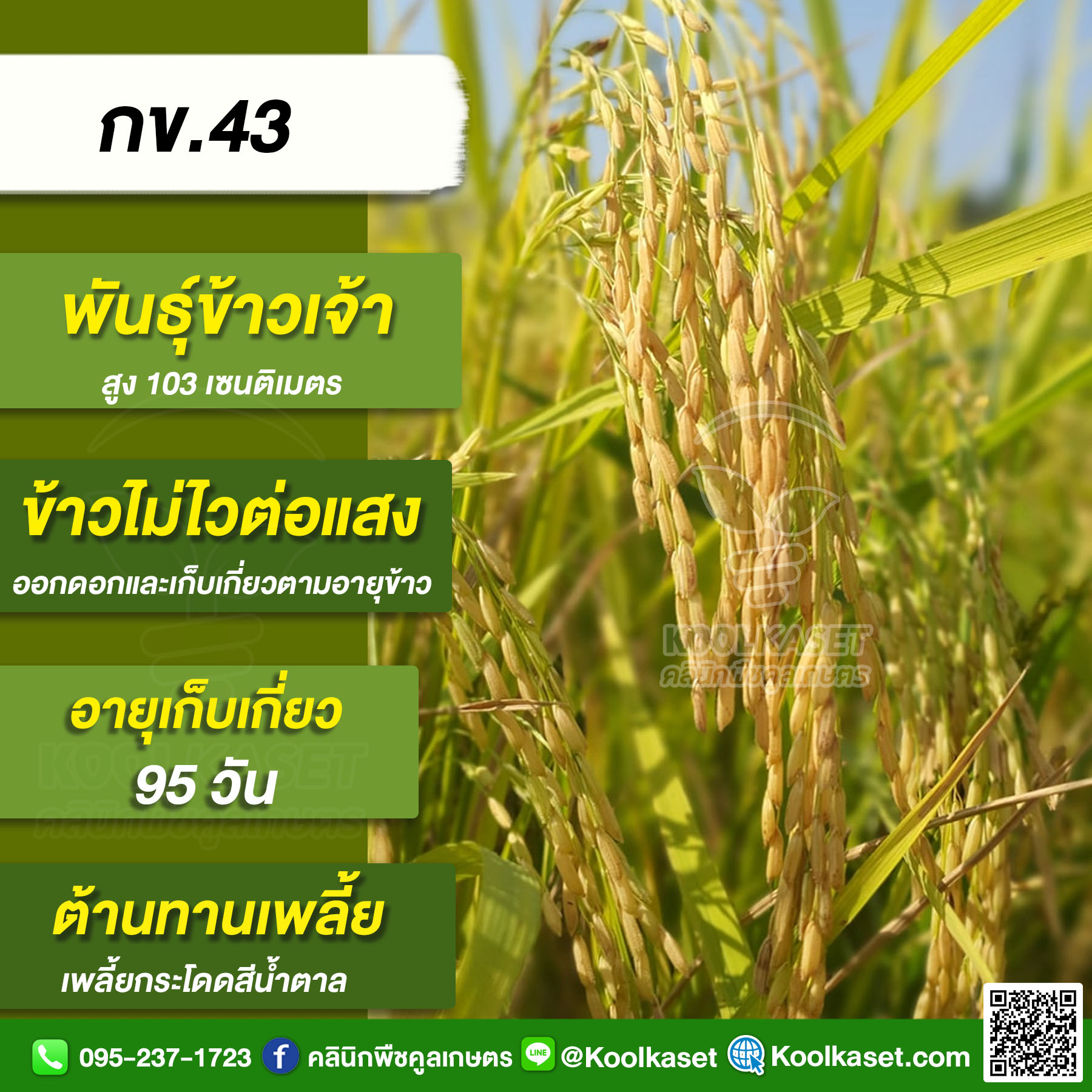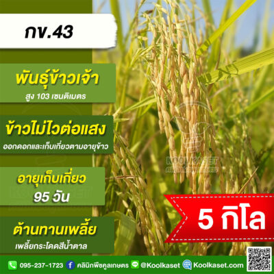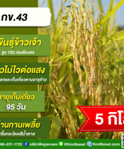 เมล็ดพันธุ์ข้าว ข้าวเจ้า กข.43 ข้าวนาปี นาปรัง ไม่ไวแสง ทานนุ่ม น้ำตาลน้อย 25 กก. คลินิกพืชคูลเกษตร KR14
