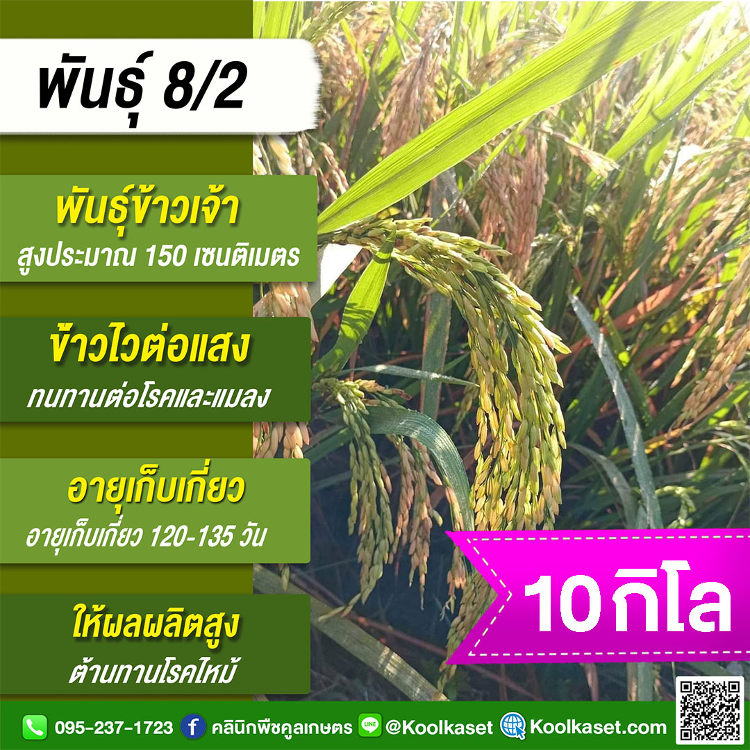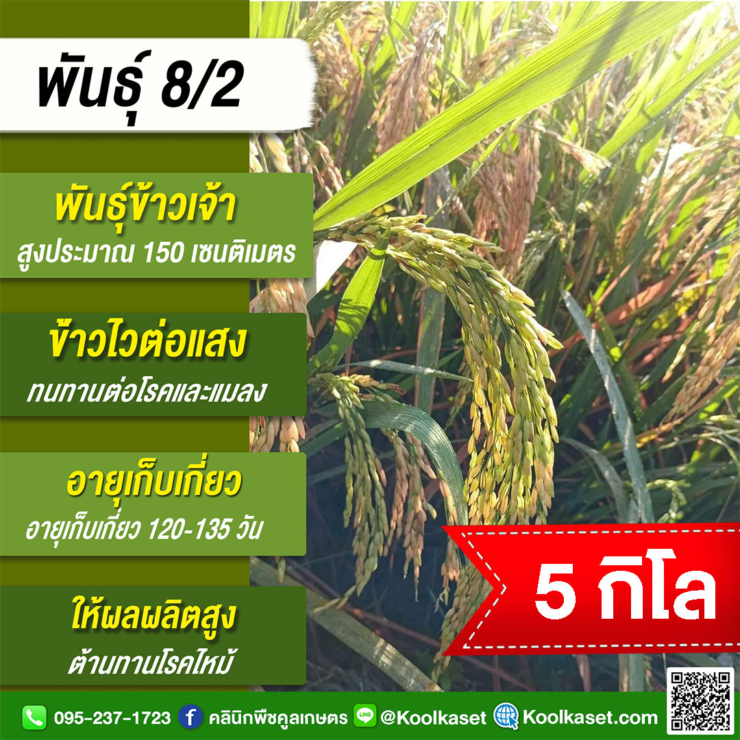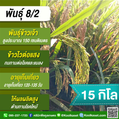 เมล็ดพันธุ์ข้าว ข้าวเจ้า 8/2 นาปี นาปรัง ไม่ไวแสง นุ่ม ผลผลิตสูง 25 กก. คลินิกพืชคูลเกษตร KR37
