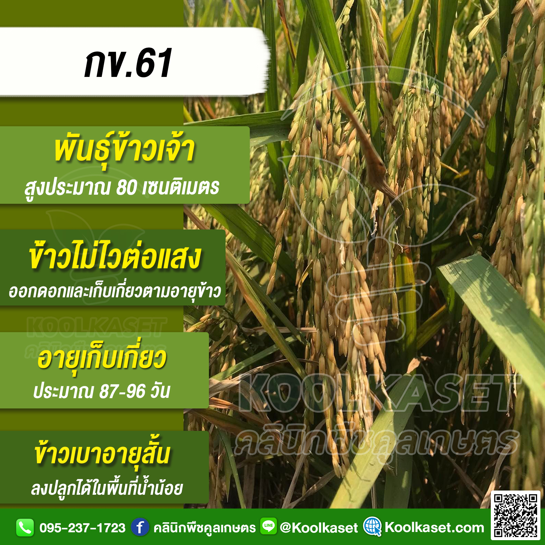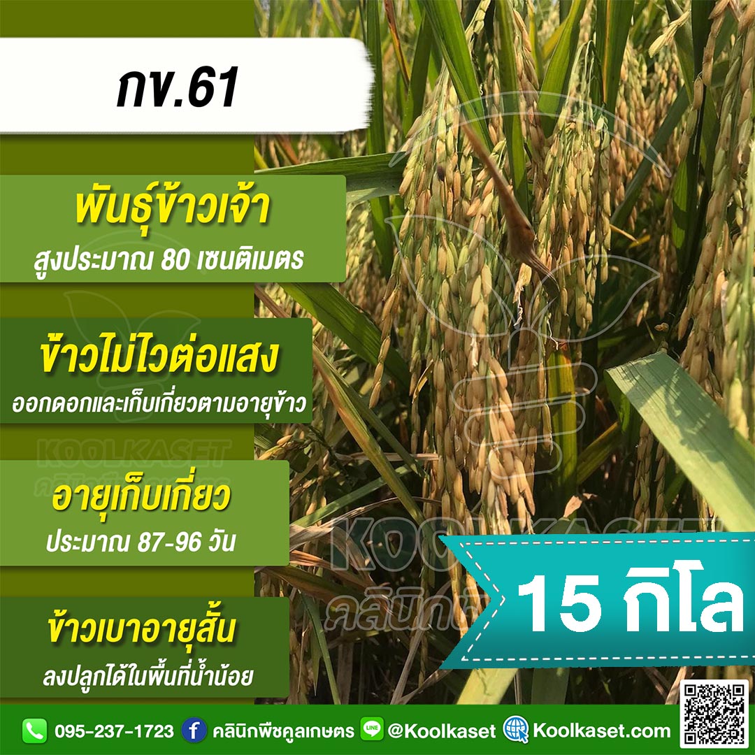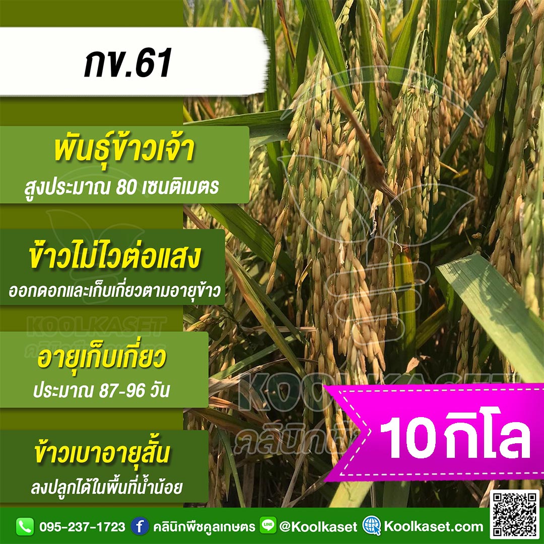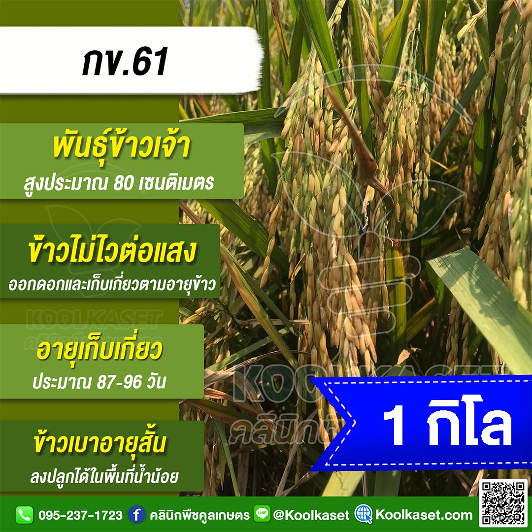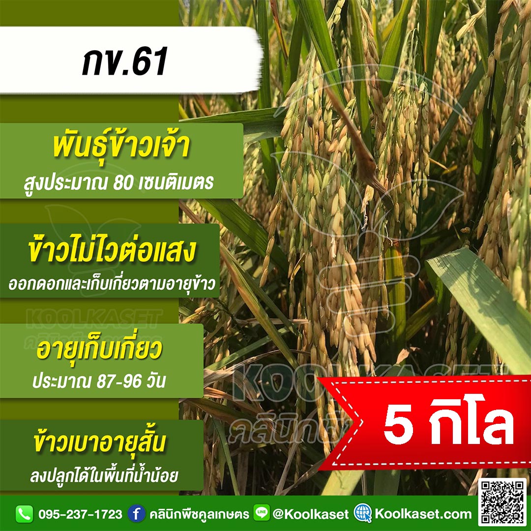 เมล็ดพันธุ์ข้าว ข้าวเจ้า กข.61 ข้าวนาปี นาปรัง ไม่ไวแสง อายุ 87-96 วัน แข็ง 25 กก. คลินิกพืชคูลเกษตร KR9