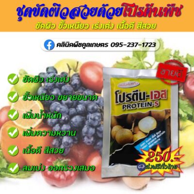 ขัดผิว โปรตีน-เอส เร่งเต่ง ขั้วเหนียว ขยายผล รสชาติดี สีสวย เนื้อแน่น เพิ่มความหวาน คลินิกพืชคูลเกษตร