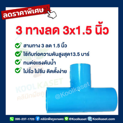 ข้อต่อ PVC 3 ทาง 3 นิ้ว ลดขนาด 1.5 นิ้ว คลินิกพืชคูลเกษตร