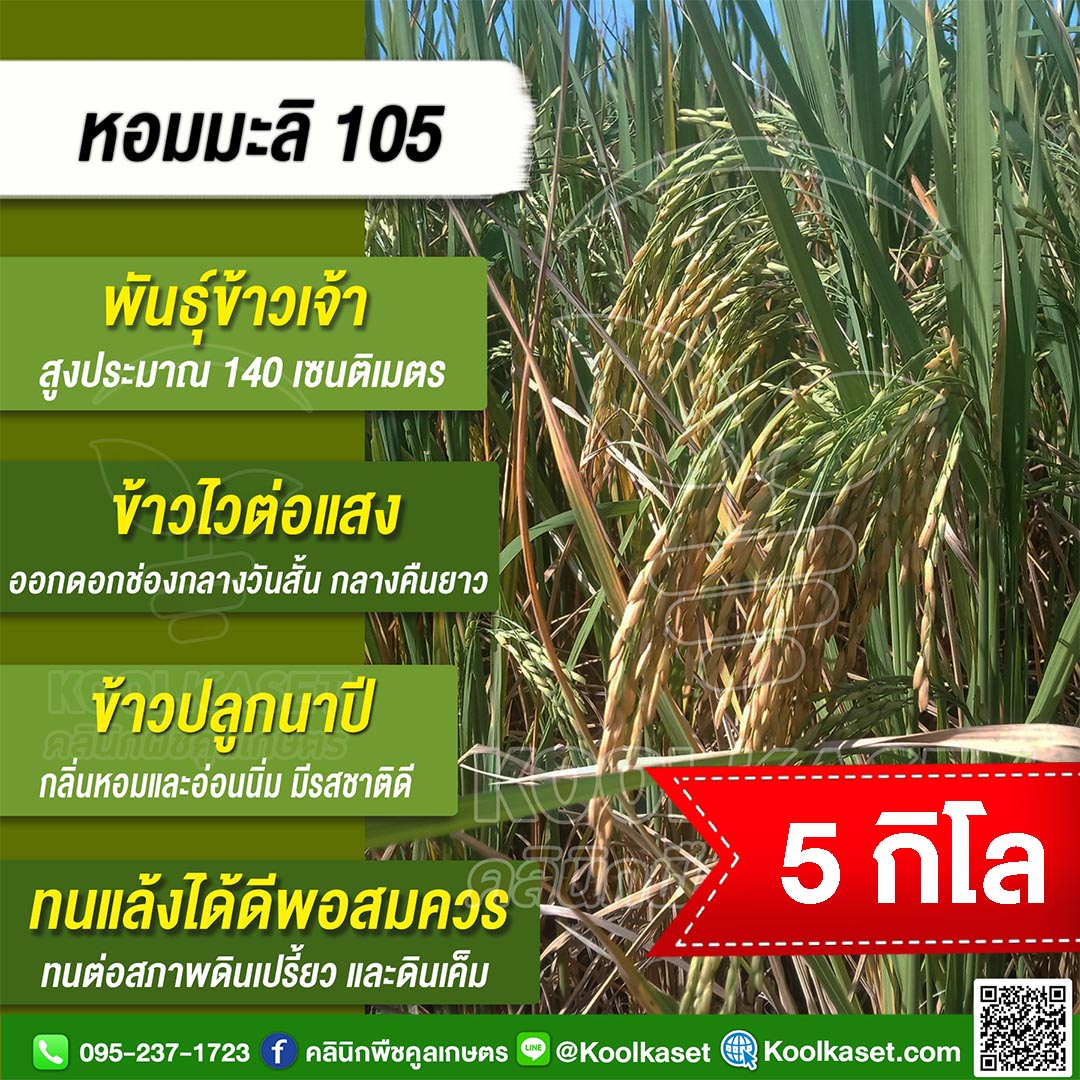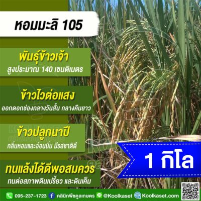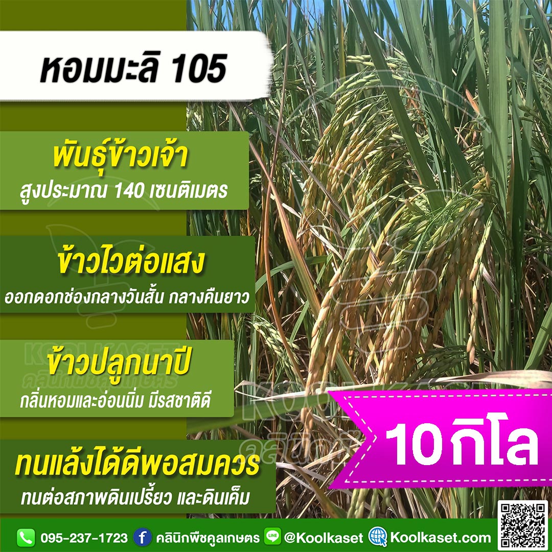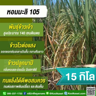 เมล็ดพันธุ์ข้าว ข้าวเจ้า หอมมะลิ105 นาปี ไวแสง 25 กก. คลินิกพืชคูลเกษตร