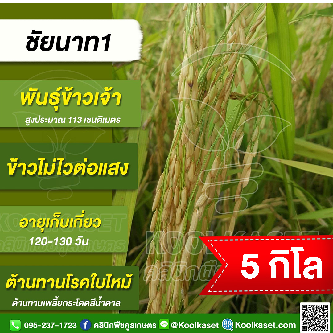 เมล็ดพันธุ์ข้าว ข้าวเจ้า ชัยนาท1 นาปี นาปรัง ไม่ไวแสง 25 กก. คลินิกพืชคูลเกษตร KR40