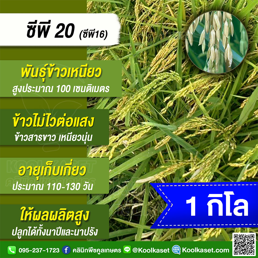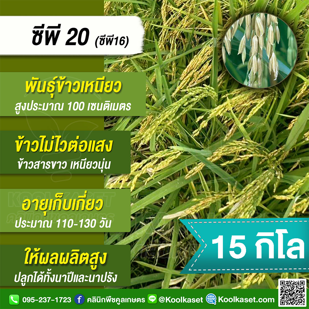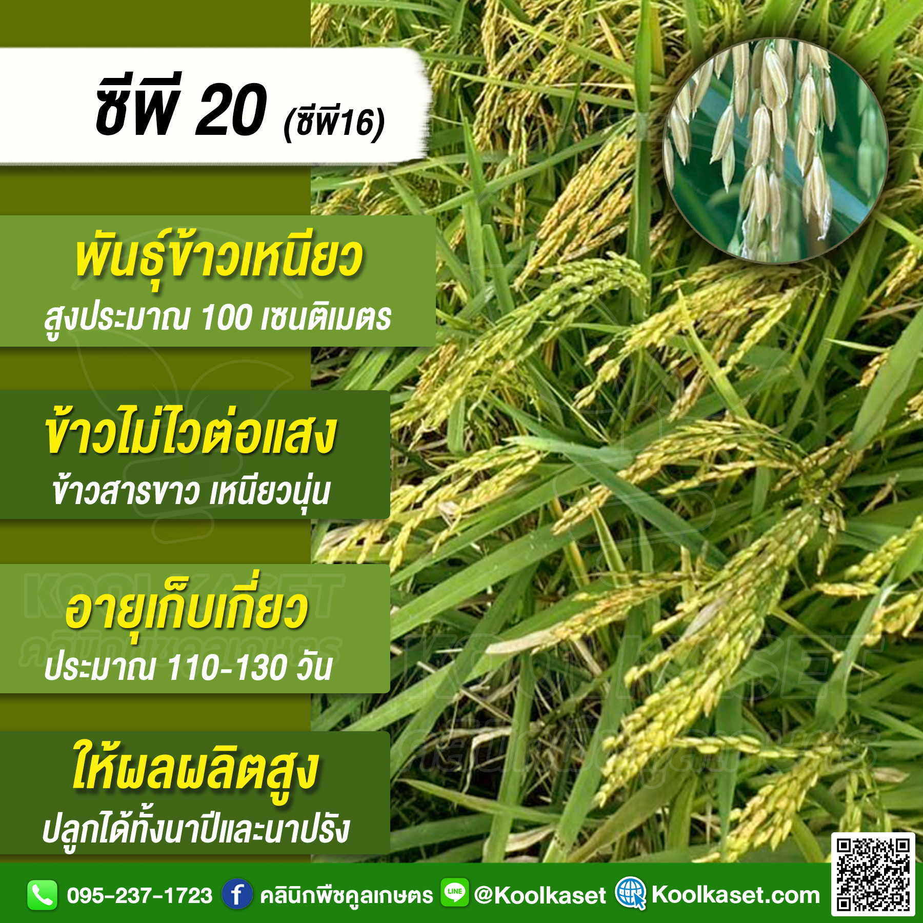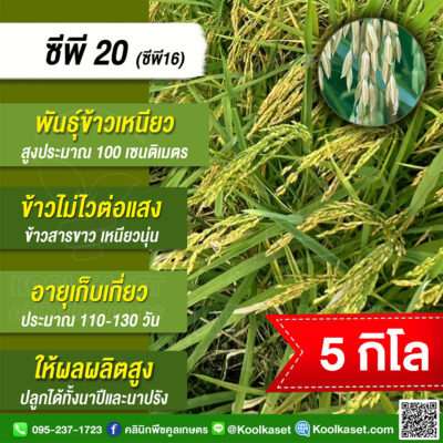 เมล็ดพันธุ์ข้าว พันธุ์ใหม่ ข้าวเหนียว ซีพี20 CP20 นาปี นาปรัง ไม่ไวแสง เมล็ดแดง 20 กก. คลินิกพืชคูลเกษตร KR74