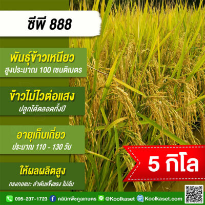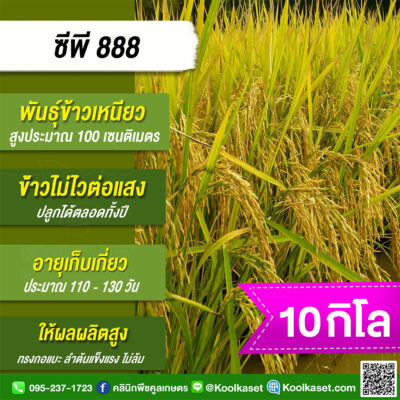 เมล็ดพันธุ์ข้าว ข้าวเหนียว CP888 ซีพี888 นาปี นาปรัง ไม่ไวแสง เมล็ดเรียวยาว นุ่ม 20 กก. คลินิกพืชคูลเกษตร KR28