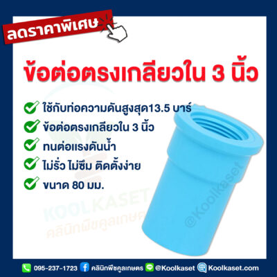 ท่อต่อตรง PVC แบบเกลียวใน 3 นิ้ว คลินิกพืชคูลเกษตร