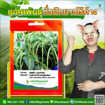 พันธุ์ผัก ถั่วฝักยาว สายฝน SL ซีดไลน์ ฝักเรียวยาว สีเขียวสด เนื้อแน่น น้ำหนักดี คลินิกพืชคูลเกษตร