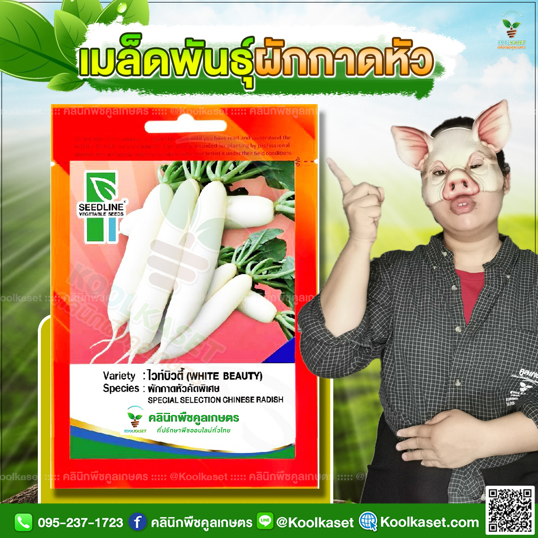 พันธุ์ผัก ผักกาดหัว ไวท์บิวตี้ SL ซีดไลน์ หัวใหญ่ ยาว สีขาวนวล ผิวเรียบสวย เนื้อแน่น คลินิกพืชคูลเกษตร