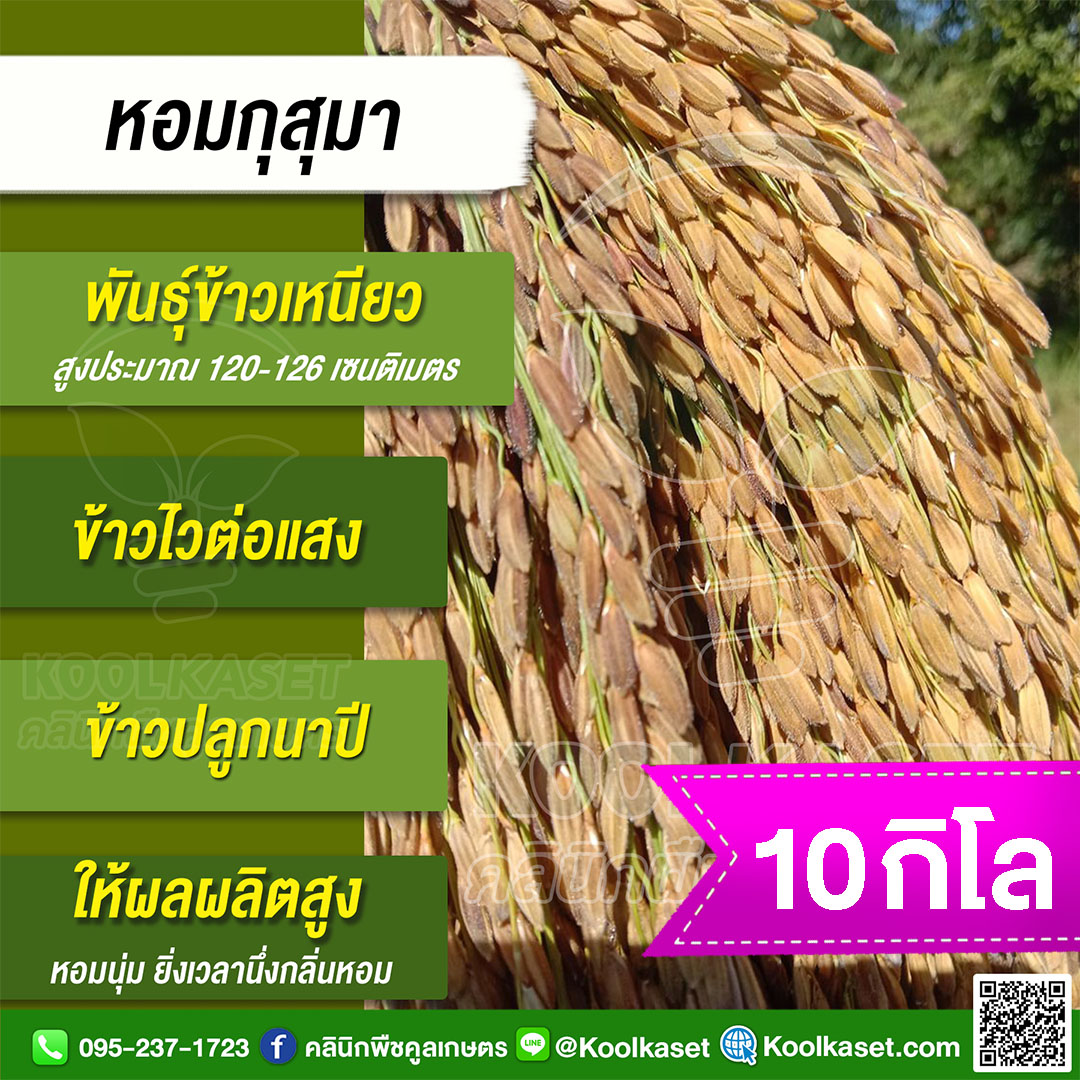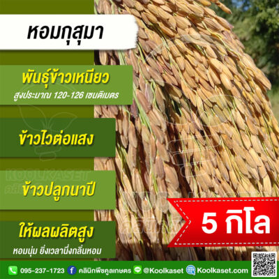 เมล็ดพันธุ์ข้าว ข้าวเหนียว พื้นเมือง หอมกุสุมา ไวแสง นาปี นุ่ม หอมฟุ้งคล้ายดอกไม้ 20 กก. คลินิกพืชคูลเกษตร KR75