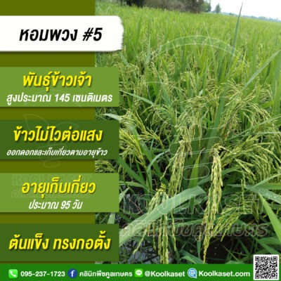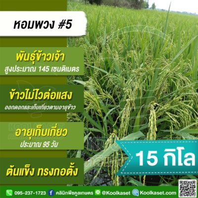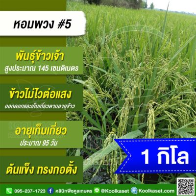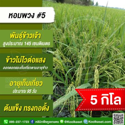 เมล็ดพันธุ์ข้าว ข้าวเจ้า หอมพวง#5 ข้าวนาปี นาปรัง 25 กก. คลินิกพืชคูลเกษตร KR2
