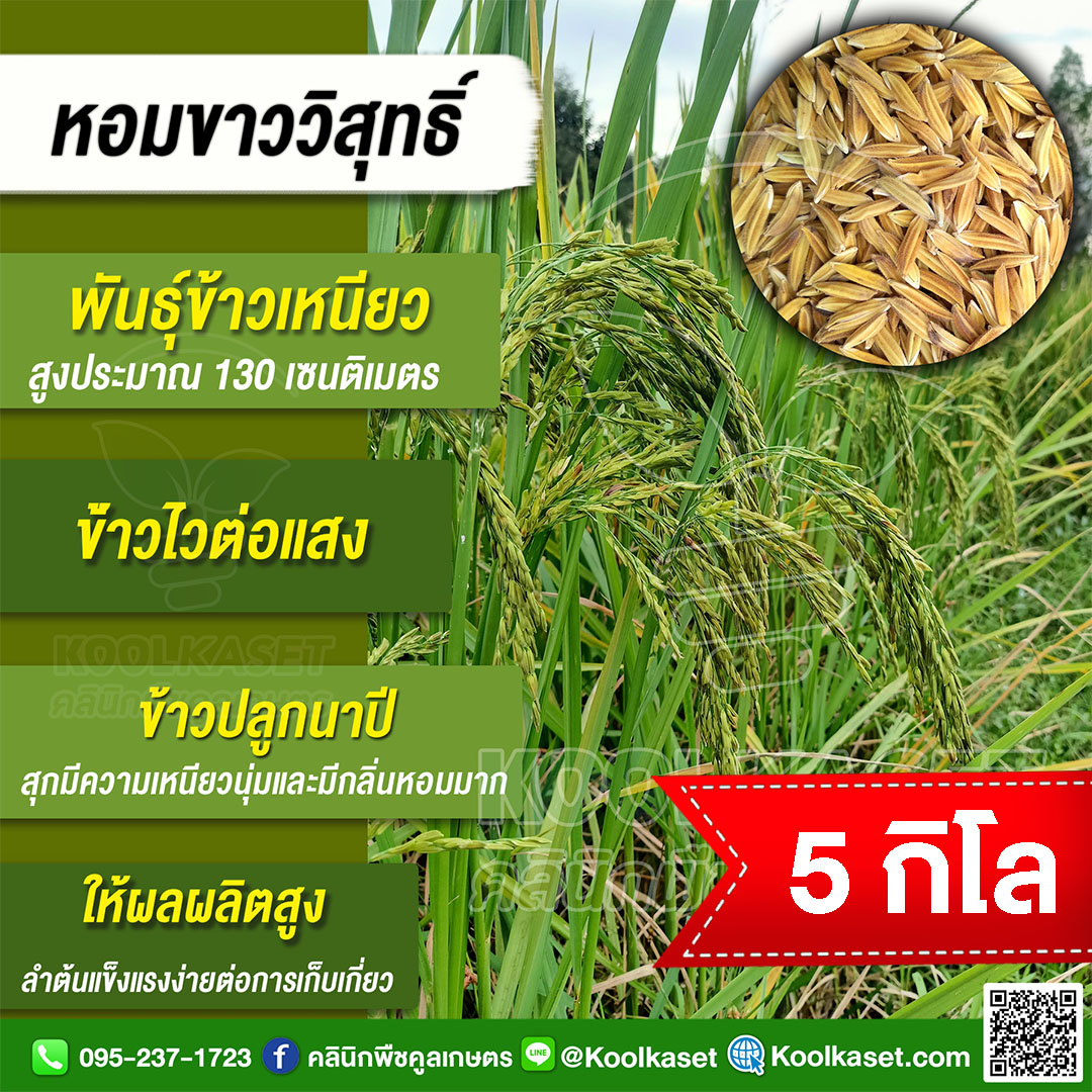 เมล็ดพันธุ์ข้าว ข้าวเหนียว หอมวิสุทธิ์ นาปี ไวแสง ต้นเตี้ย เหนียวนุ่ม ผลผลิตสูง 20 กก. คลินิกพืชคูลเกษตร KR29