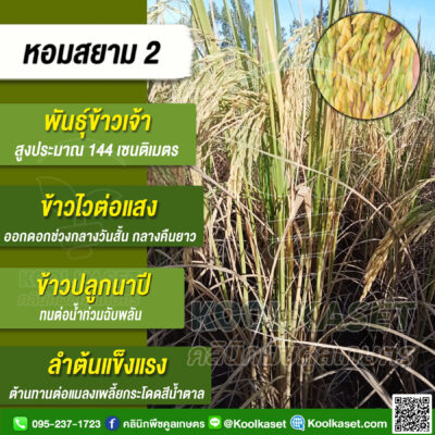 เมล็ดพันธุ์​ข้าว​ ข้าวเจ้า หอมสยาม หอมมะลิสูง ข้าวนาปี ไวแสง หอมนุ่ม ผลผลิตสูง 25 กก. คลินิกพืชคูลเกษตร