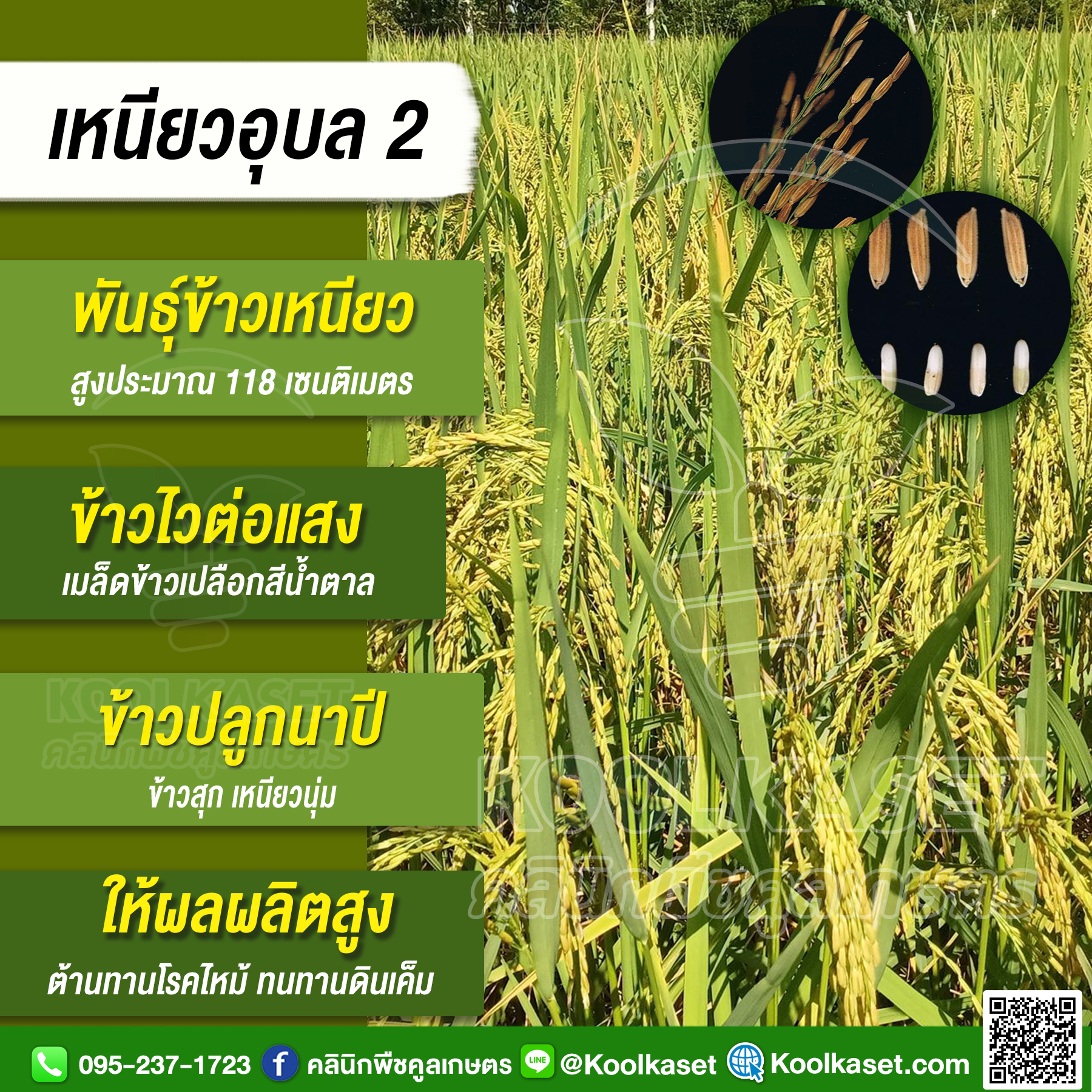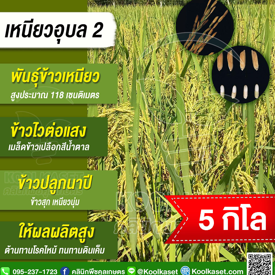 เมล็ดพันธุ์​ข้าว​ ข้าวเหนียว หอมอุบล 2 นาปี ไวแสง เหนียวนุ่ม ต้านทานโรคไหม้ ต้นแข็ง 25 กก. คลินิกพืชคูลเกษตร KR93