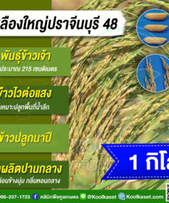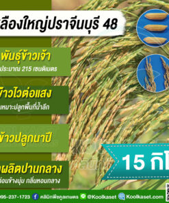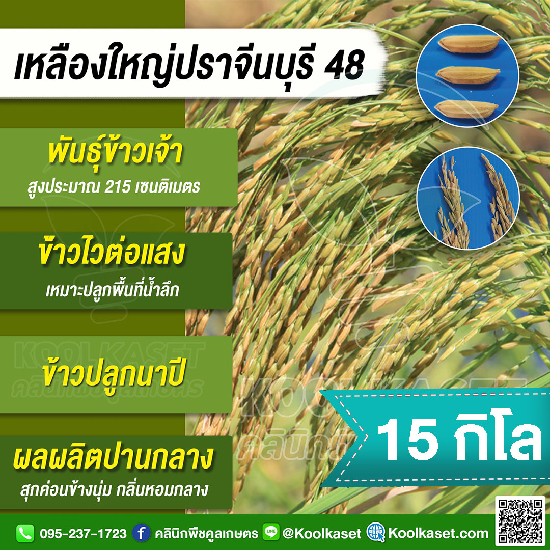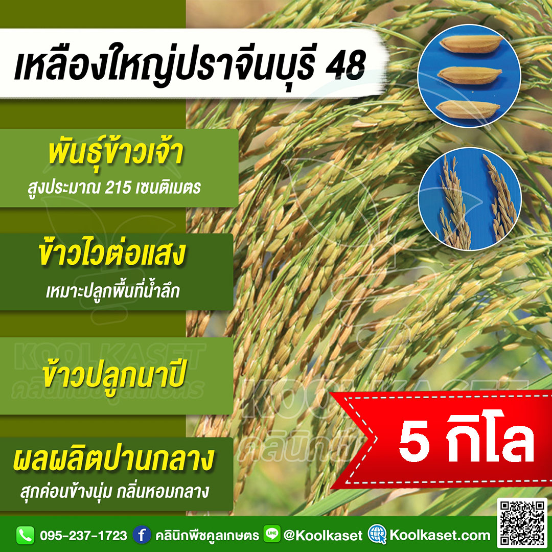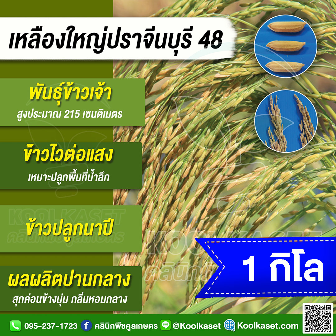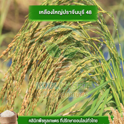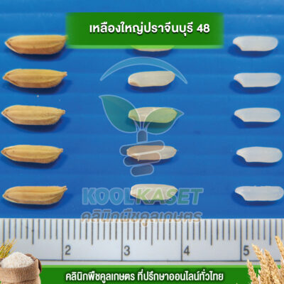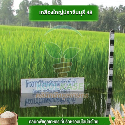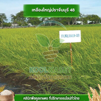 เมล็ดพันธุ์​ข้าว ข้าวเจ้า เหลืองใหญ่ปราจีน ปราจีนบุรี 48 ไวแสง นาปี ยืดตามน้ำ เหมาะพื้นที่น้ำลึก ทนน้ำท่วม คลินิกพืชคูลเกษตร