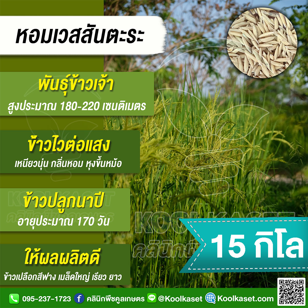 เมล็ดพันธุ์ข้าว ข้าวเจ้า เวสสันตะระ นาปี เมล็ดเรียวยาว เหนียวนุ่ม 15 กก. คูลเกษตร KR35