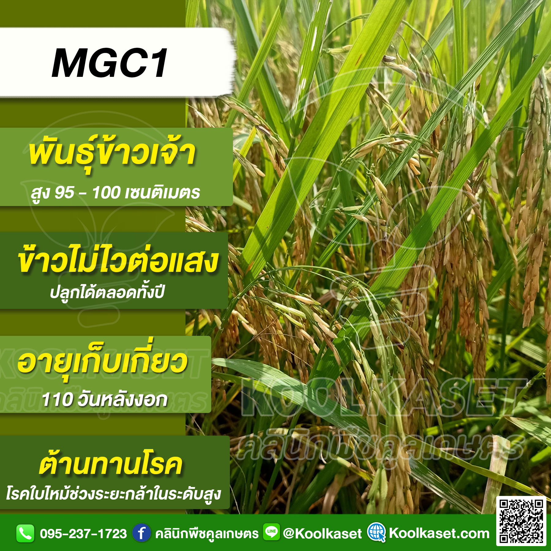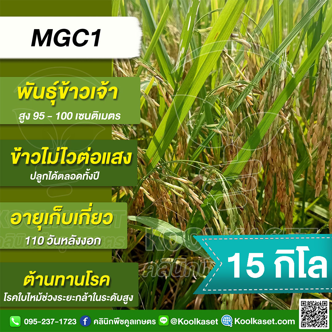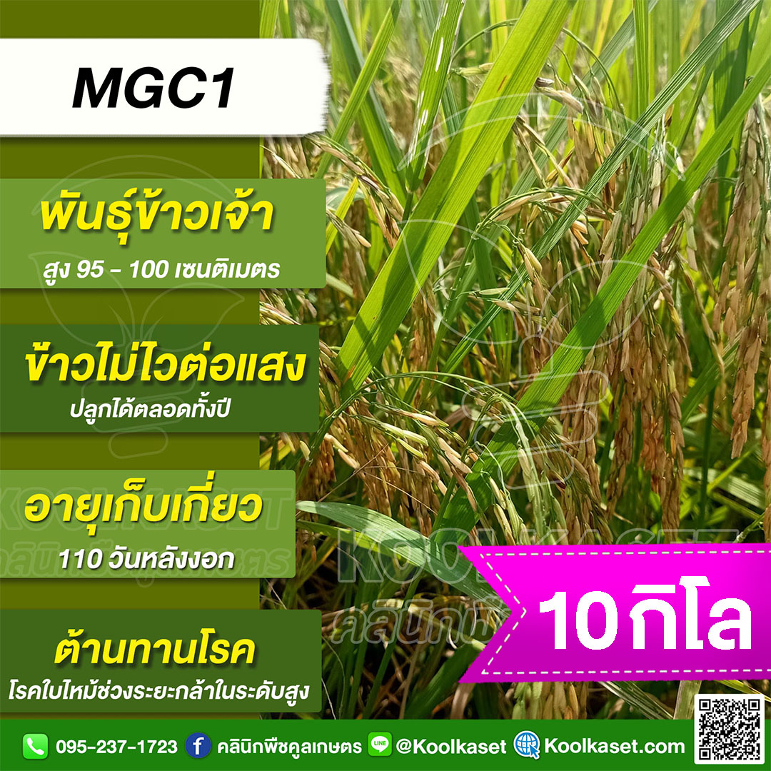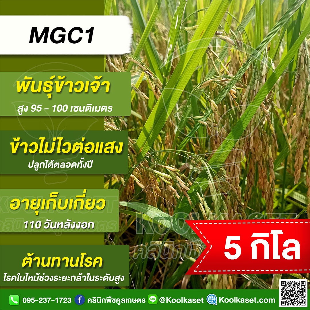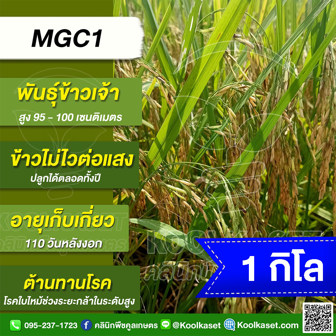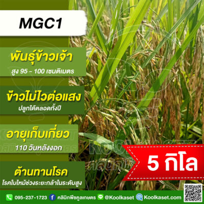 เมล็ดพันธุ์ข้าว ข้าวเจ้า MGC1 เอ็มจีซี1 นาปี นาปรัง ไม่ไวแสง ต้านทานโรคง 25 กก. คลินิกพืชคูลเกษตร KR54