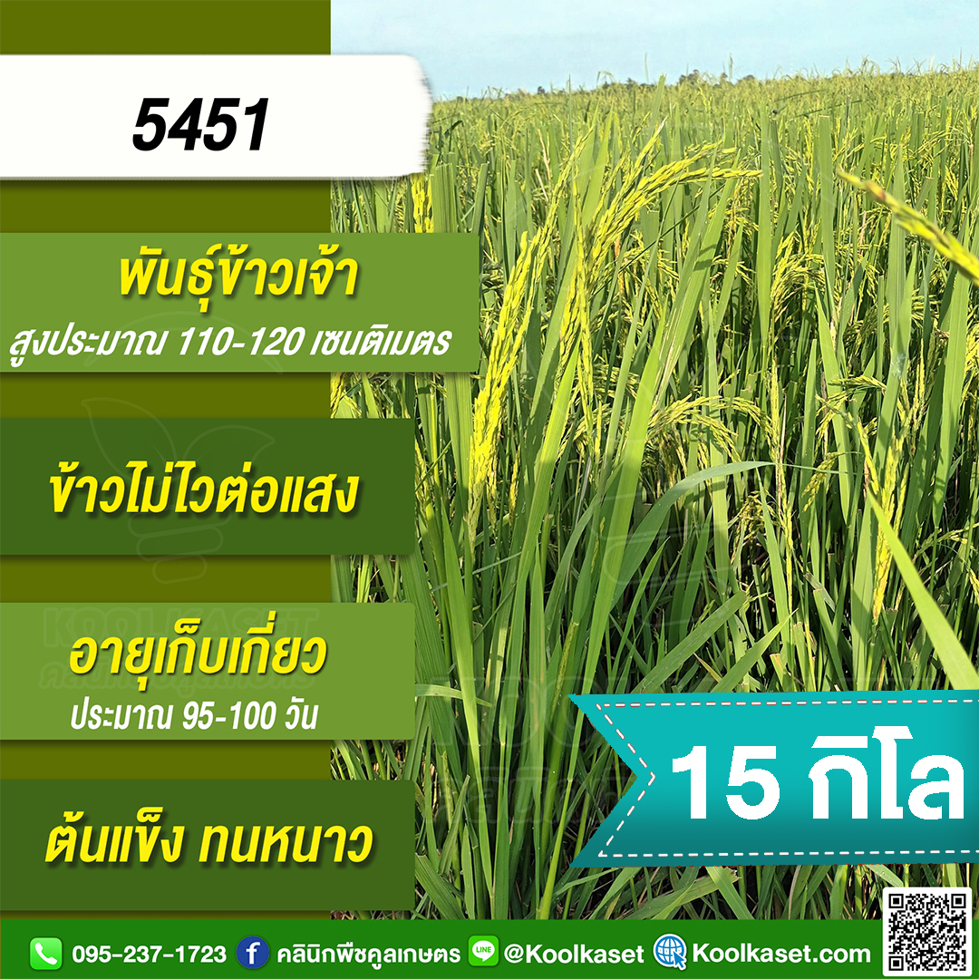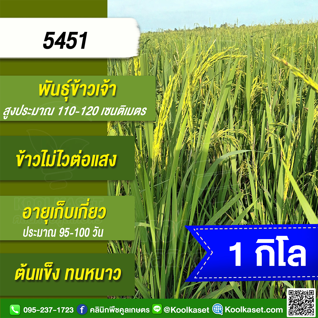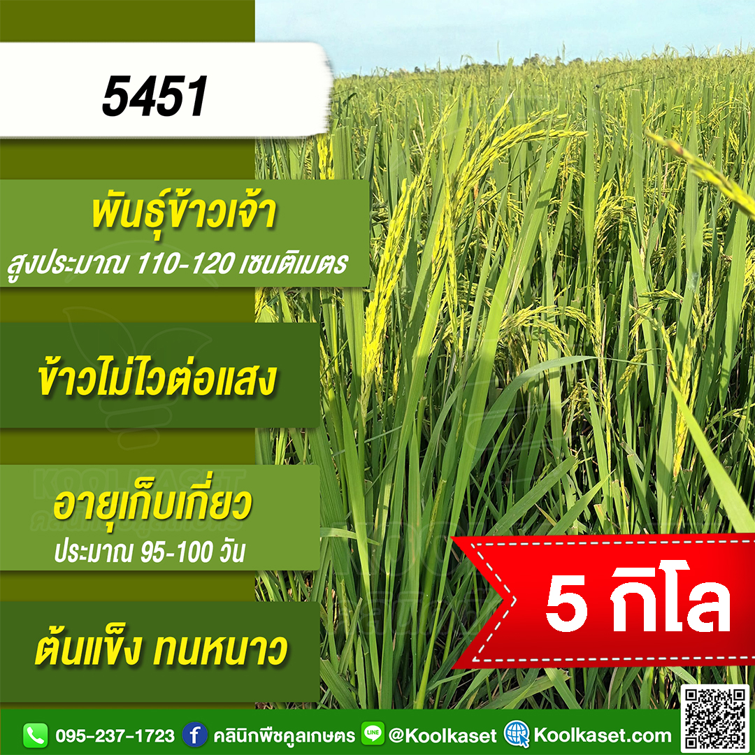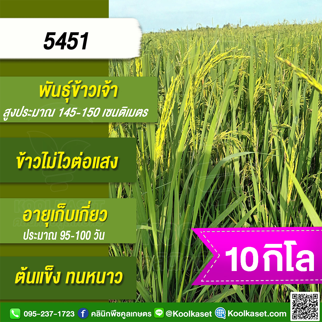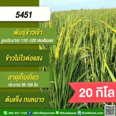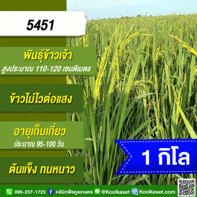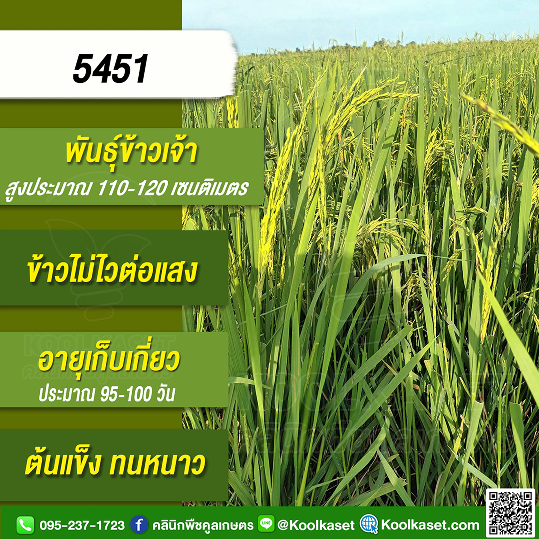 เมล็ดพันธุ์​ข้าว​ ข้าวเจ้า 5451 นาปี นาปรัง ไม่ไวแสง เมล็ดนิ่ม ทนดินเปรี้ยว คลินิกพืชคูลเกษตร