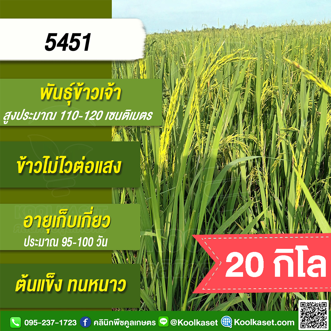 เมล็ดพันธุ์​ข้าว​ ข้าวเจ้า 5451 นาปี นาปรัง ไม่ไวแสง เมล็ดนิ่ม ทนดินเปรี้ยว 25 กก. คลินิกพืชคูลเกษตร KR51