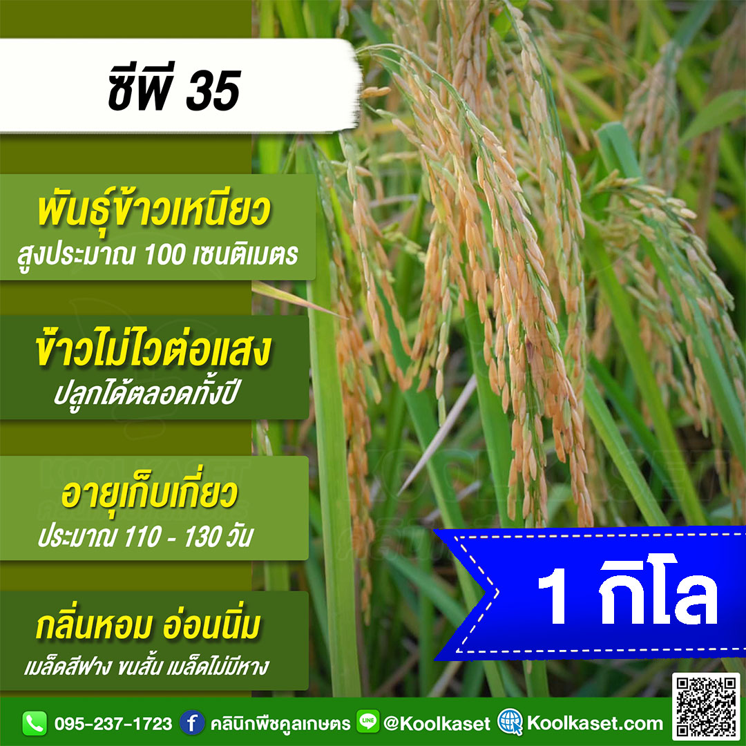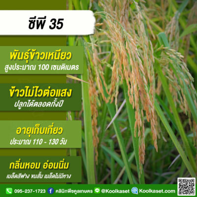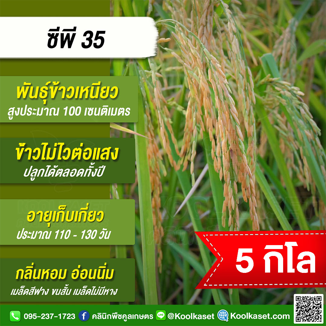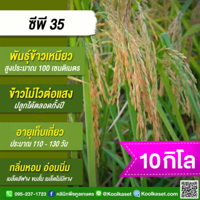 เมล็ดพันธุ์ข้าว ข้าวเหนียว CP35 ชีพีไรซ์ 35 เบญจเมฆา1 นาปี นาปรัง ต้นเตี้ย นุ่ม ไม่ไวแสง 20 กก. คลินิกพืชคูลเกษตร KR50